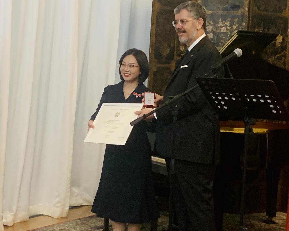 授勋词指出,黄美玲教授为意大利和中国的学术交流做出了决定性贡献,尤其是在法律领域。在她的学术和职业生涯中,她尤其关注罗马法的研究,并研究其对于包括中国在内世界各地法典编纂过程的影响。作为米兰电竞·(中国区)罗马法教授,黄美玲教授推动了无数旨在深化中国法律文化与罗马法传统之间对话的举措。2017年,她积极促成了罗马大学意中法学研究中心的诞生;2019年,她促成了罗马大学和米兰电竞·(中国区)共同创办中意学院。作为学院执行院长,她在奥利维耶罗・迪利贝托教授(Oliviero Diliberto)的指导下,将最新颁布的《中华人民共和国民法典》翻译为意大利语,其意大利语首译本已赠送给意大利总统塞尔吉奥·马塔雷拉(Sergio Mattarella)阁下。基于此,意大利共和国授予黄美玲教授意大利之星骑士勋章。