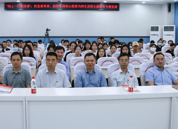 周铭山结合党的二十大报告和习近平总书记系列讲话精神,为在场师生阐释教育强国和创新强国建设的重要意义,强调要深刻理解教育强国建设基础性战略性的先导作用,并从历史脉络、现实比较、路径选择、着力重点四个方面厘清教育强国、人才强国和创新强国建设的核心逻辑。