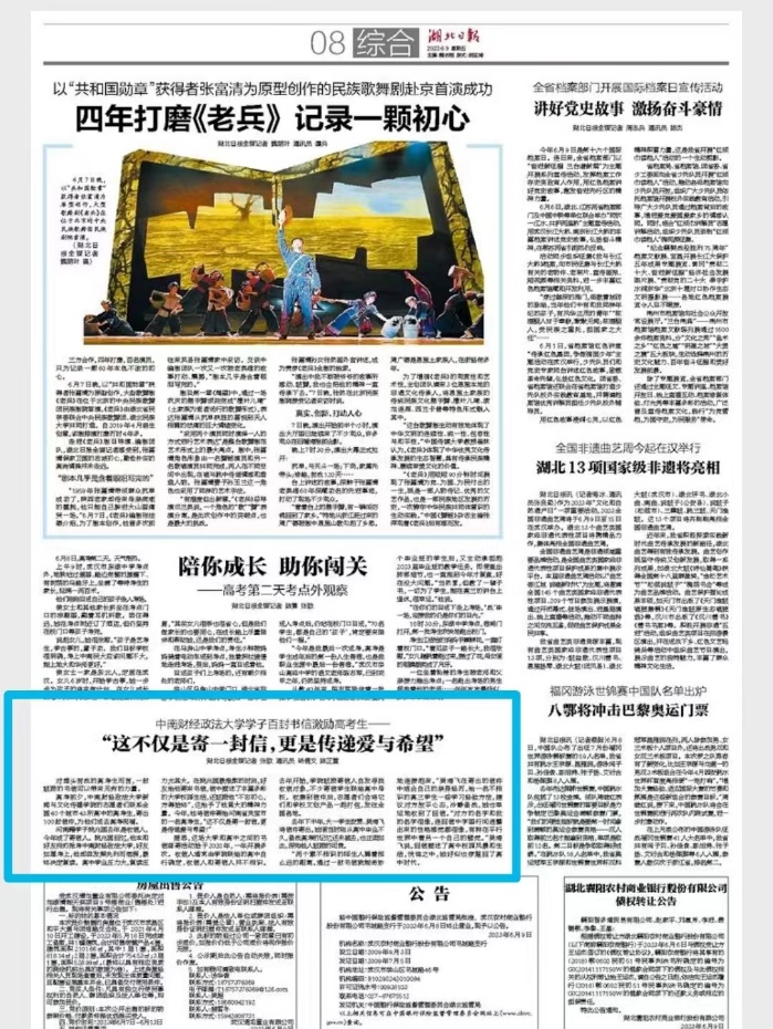 注重线上精心直播。党委学生工作部负责人做客新华网2023高考情报局,重点介绍我校“希贤计划”拔尖创新人才培养项目。招生办公室依托中国交通广播、中国教育在线、湖北广播电视台、武汉广播电视台、极目新闻、荆楚网、湖北日报等媒体平台开展招生宣传,做到宣传全覆盖。据不完全统计,相关直播观看量突破500万。
