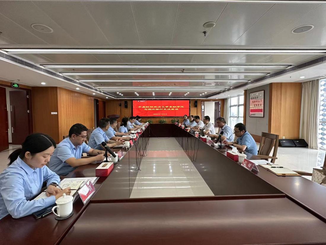 随后湖北银行公司金融部总经理郑荣来、人力资源部总经理平祥仁、董事会办公室主任杨世坤、交易银行部负责人李艳萍、公司金融部总经理助理范志华和韩亚文等详细介绍了湖北银行的发展现状、人才需求以及特色优势。交流环节中,双方针对创新型金融人才培养、优质人才引进、实践基地建设等进行了深入沟通与探讨。