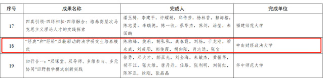 陈柏峰教授主持的《“经典”和“经验”双轮驱动的法学研究生培养模式》荣获高等教育(研究生)国家级教学成果奖二等奖。