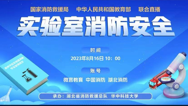 新闻网讯(通讯员 黄志朗)8月16日上午,由国家消防救援局、中华人民共和国教育部联合主办,湖北省消防救援总队、华中科技大学承办的“实验室消防安全”活动通过线上直播方式举行。学校组织全校实验室工作人员以线上收听收看的方式参与学习。