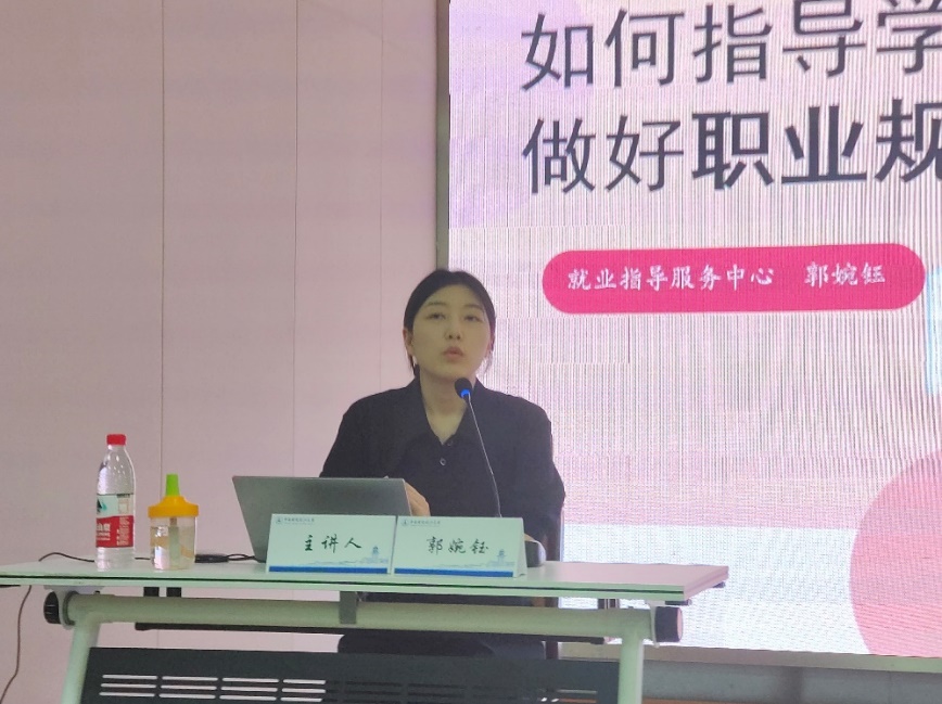 在案例研讨环节,就业指导服务中心郭婉钰副教授和心理健康教育咨询中心副主任杨子云副教授分别就《如何指导学生做好职业规划》和《如何做好心理危机预防与干预》进行指导。