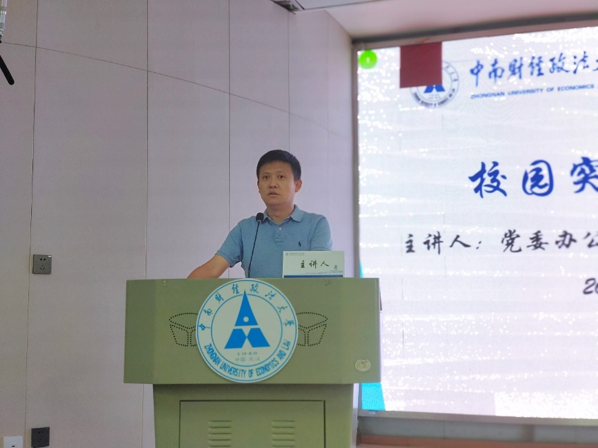 黄波作题为《校园突发事件上报》的专题培训