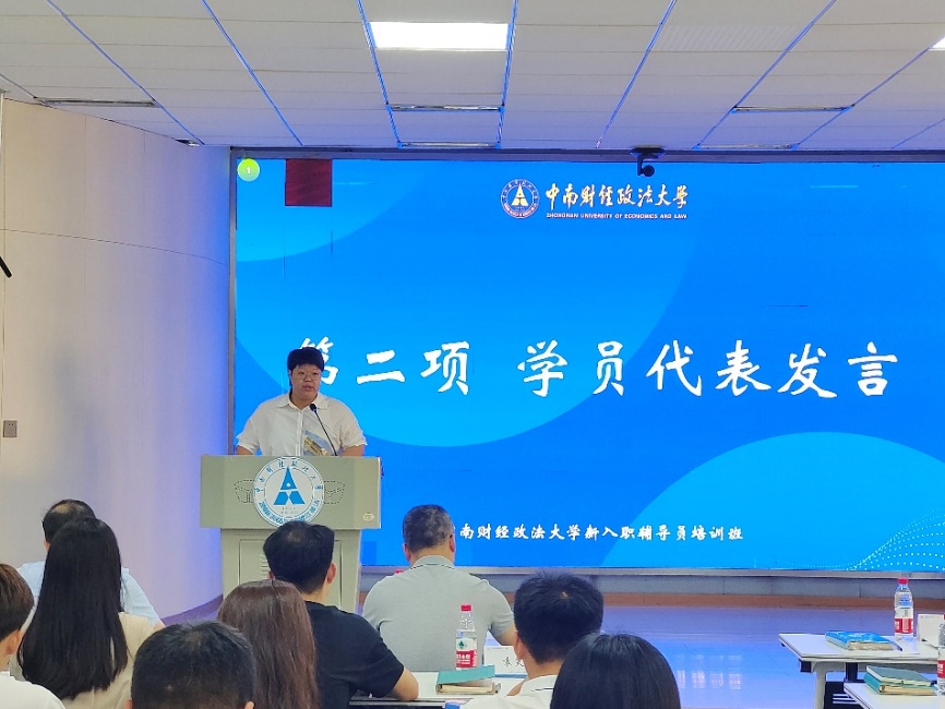 外国语学院研究生辅导员袁笑雨和法学院本科生辅导员牛静作为学员代表发言。2022年全国“最美高校辅导员”、工商管理学院辅导员尼加提·艾买提带领全体学员重温辅导员誓词。