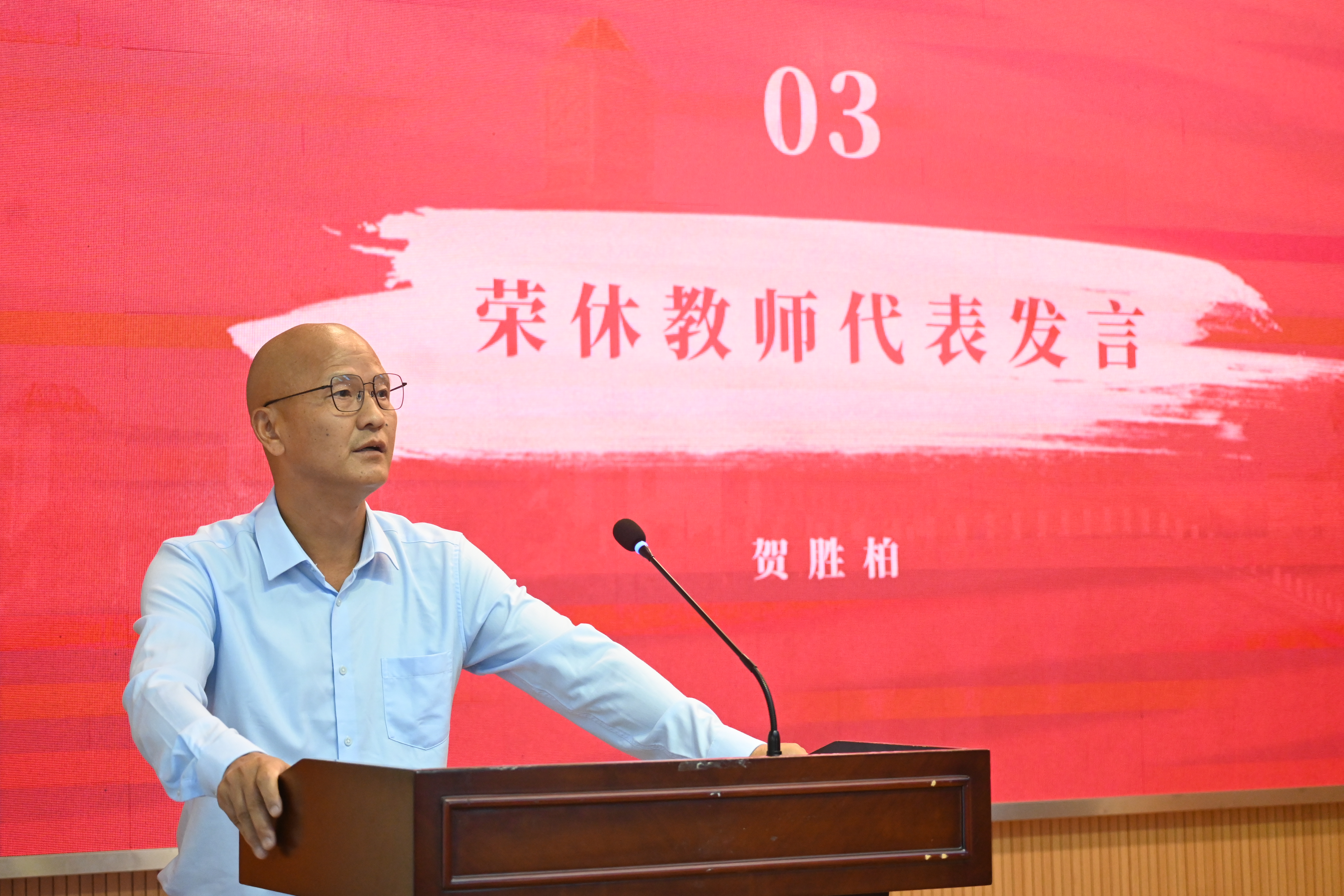 荣休教师贺胜柏认为,从教三十七年的经历既是育人也是育己。与同事们奋斗的日子,在工作中的突破,培育优秀的学生,都使他留下难忘的回忆。他提到,我院教师在教学实践中应实现教学相长,践行初心与使命,启发学生思维,使学生具备创业和劳动技能,帮助学生建立起应对挑战的“防火墙”。