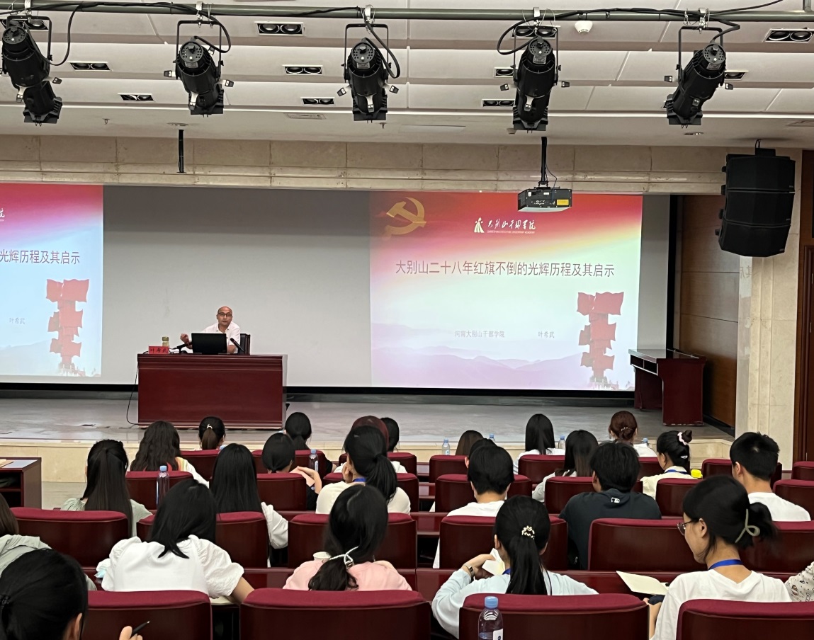 8月26日下午,营员们走进报告厅,学习聆听“大别山二十八年红旗不倒的光辉历程及其时代启示”专题讲座。“家家有红军,户户有烈士;山山埋忠骨,岭岭铸忠魂”这句诗所形容的正是共产党人在这片热土上付出的牺牲与贡献,通过这节讲座,营员们了了解了大别山28年红旗不倒的革命历史,受到了大别山“坚守信念 胸怀全局 团结奋斗 勇当前锋”革命精神的洗礼。