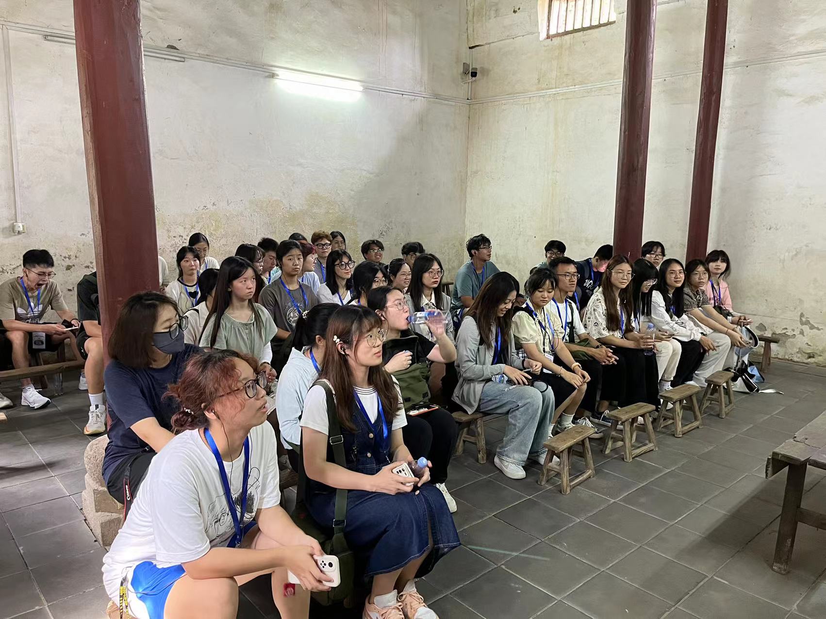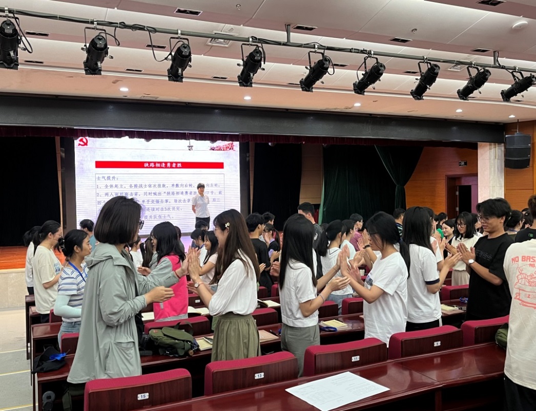 8月25日晚,营员们走入学院内“实事求是楼”参加开班仪式。“红色国民大会”的热烈开展让成员们互相熟悉和了解,在大别山这座特殊的红色山脉中建立起属于营员们的革命友谊。随后的“激情红歌会”的时间,“八月桂花遍地开”的经典歌声传遍教室、穿透时间,透过朗朗上口、积极昂扬的歌词,营员们仿佛看见了当年当地人民对红军的爱戴、对革命的热忱,对未来生活的向往。