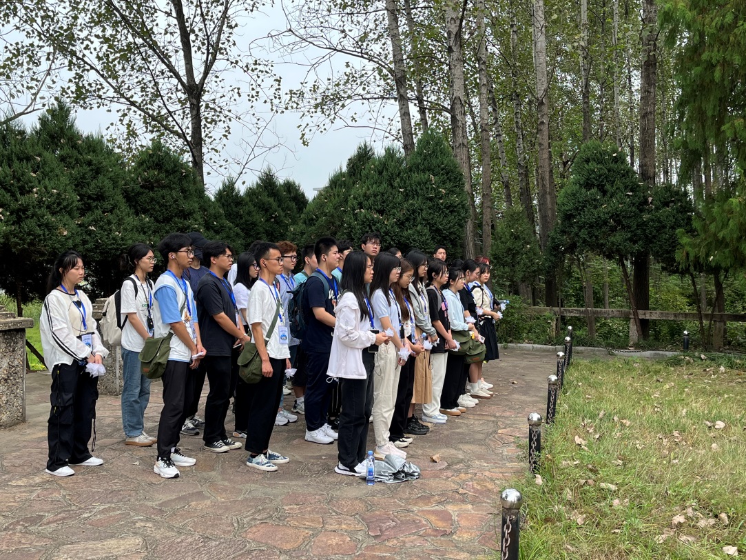 继续踏上学习旅途,营员们来到河南省新县箭厂河乡李家河村的一片稻田,这片不足三十平米的稻田竟然埋葬着三百多名共产党员和革命群众。讲解老师的细致、深情的叙述令大家震撼,小小的稻田中蕴含着革命先烈的忠诚和牺牲精神,激发着每个营员的感慨和敬意。青松环绕的旧址前,微风拂面,和平而幸福的生活,朝气蓬勃的后辈们,仿佛回应着先烈们抛却生死奋斗的信念。营员们依次环绕旧址,敬献白花给纪念碑,用最崇高的敬意纪念革命烈士们。