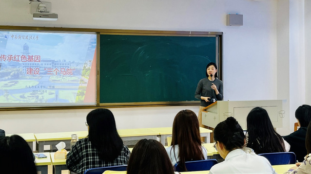 马克思主义学院党委书记邓杨以“传承红色基因,建设‘三个马院’”为主题为新生讲授党课,她以史为据,图文并茂地向新生介绍了学校学院的历史沿革,一个个鲜活生动的历史故事、鲜为人知的历史细节、名贯中外的杰出校友,让大家对“红色中南大”的认识更加饱满起来。邓杨着重介绍了学院正在着力推进的“红色马院、学术马院、幸福马院”建设,号召全体学子齐心协力来实现好马克思主义学院中远期愿景、落实好马克思主义学院办学任务,深化了新生的爱校荣院意识。