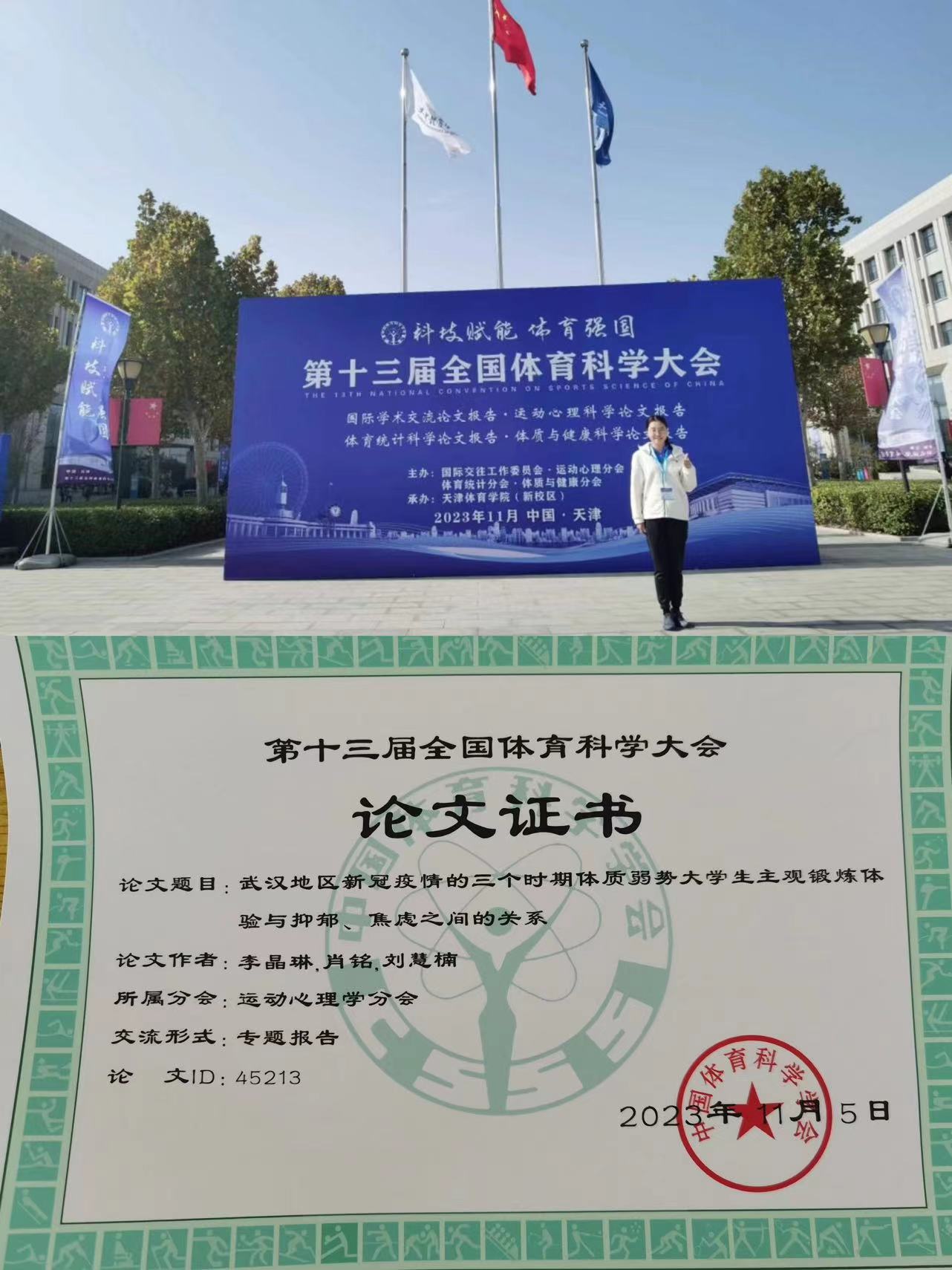 我校体育部李晶琳和龚秋玲两位教师受邀参加,并作了专题报告和墙报交流。李晶琳以《武汉地区新冠肺炎疫情的三个时期体质弱势大学生主观锻炼体验与抑郁、焦虑之间的关系》为题进行了专题报告,通过收集新冠肺炎疫情突发疫情应急围堵阶段、常态疫情防控探索阶段、全链条防控的动态清零三个不同时期的数据,采用主观锻炼体验量表(SEES)、广泛性焦虑障碍(GAD-7)和抑郁症量表(PHQ-9)三个心理量学验表分别测量主观锻炼体验、焦虑和抑郁。潜在剖面分析显示,体质弱势大学生的主观锻炼体验分为三类解决方案,探索出“消极组”“疲劳组”和“积极体验组”,对高等教育中的体育教育提供了重要借鉴意义,干预措施应该针对三种主观锻炼体验来进行差异化调整。