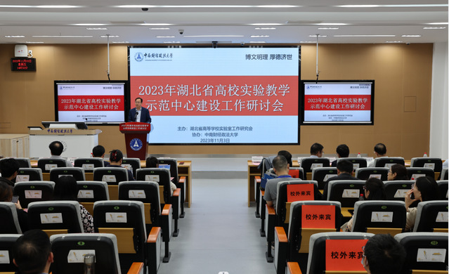 新闻网讯(通讯员 黄志朗 摄影 杜鹏 张吕尉)11月3日,由湖北省高等学校实验室工作研究会主办、米兰电竞·(中国区)承办的2023年湖北省高校实验教学示范中心建设工作研讨会在我校召开,来自省内十余所高校的实验室工作相关领导、专家、骨干以及有关公司负责人共计100余人参会。校党委常委、副校长刘仁山出席会议并致辞。会议由教务部部长钱学锋、华中科技大学实验室与设备管理处处长李震彪主持。