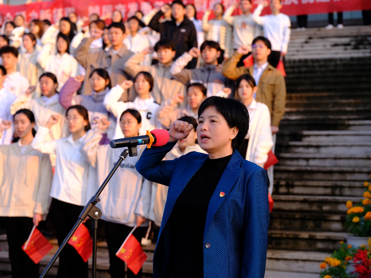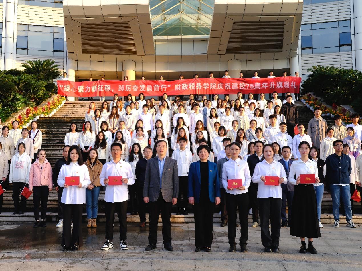新闻网讯(通讯员 钟唯 学生通讯员 胡玉璐 宋汝朝)11月6日上午7:00,财政税务学院举办了以“凝心聚力新征程,踔厉奋发勇前行”为主题的国旗故事会活动。校党委学生工作部部长余小朋同志,财政税务学院院长张克中同志、院党委书记袁桂君同志、副院长魏福成同志、党委副书记吴兴华同志及学院行政教辅老师,学生党支部书记、党员及入党积极分子代表,共计140余名师生共同参加了此次国旗故事会。活动由学院2023级税务专业硕士研究生郝至臻主持。