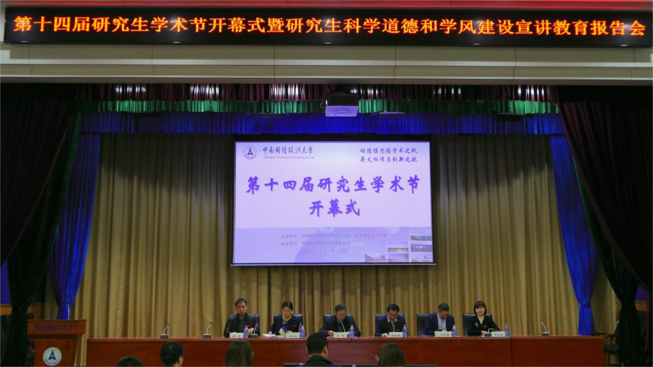 新闻网讯(通讯员 付慧娟 学生通讯员 江剑 李立群 陈梦洁 摄影 李正一 郑丽娟 陆徐美)为深入学习宣传贯彻党的二十大精神,深刻学习领会习近平总书记关于弘扬科学家精神和加强作风学风建设工作重要指示精神,11月20日上午,我校第十四届研究生学术节开幕式暨研究生科学道德和学风建设宣讲教育报告会在文泉楼学术报告厅隆重举行。校党委常委、副校长覃红教授,科学研究部部长张金林教授,研究生院院长胡弘弘教授,党委研究生工作部部长肖翠祥,团委书记黄小妹出席开幕式,党委宣传部、研究生院、党委研究生工作部主要负责人,全校19个研究生培养单位分管研究生思政工作和教育工作的领导、研究生工作办公室老师以及华中地区兄弟高校的研究生代表参加了开幕式。开幕式由胡弘弘主持。