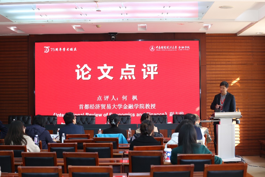 在分论坛二,南京大学工程管理学院教授杨学伟教授、上海财经大学教务处处长朱小能教授、中国人民大学财政金融学院教授高昊宇教授分别做了“我国A股国企被低估了吗”“央行绿色货币政策沟通与资产定价”“FinTech is Informative in Financial Markets: Evidence from Earning Announcements”的学术报告。武汉大学经济与管理学院余静文教授对上述论文进行了点评。分论坛二由金融学院宋清华教授主持。