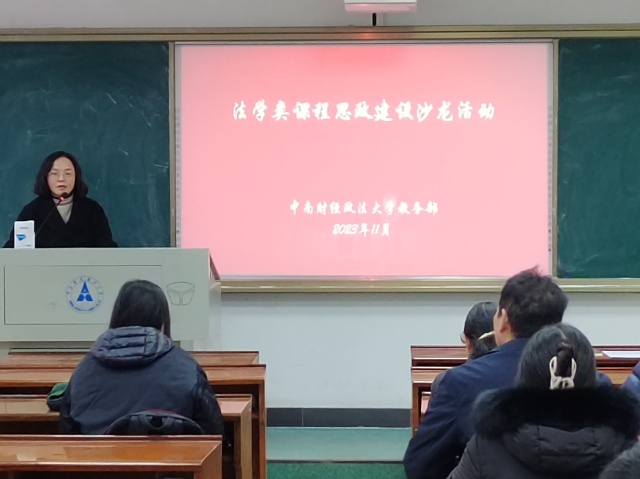 新闻网讯(通讯员 付洪深 摄影 李晗)为深入贯彻习近平法治思想“三进”工作要求,落实立德树人根本任务,推动法学类专业课程与思政课程同向同行,11月30日下午,学校在文波楼206教室举行法学类专业课程思政建设沙龙活动。教育部首批课程思政示范课程《当代中国法治》教学团队核心成员龚春霞副教授以《课程思政建设的实践探索》为题作专题讲授,法学院和刑事司法学院60余名教师代表参加此次沙龙活动。