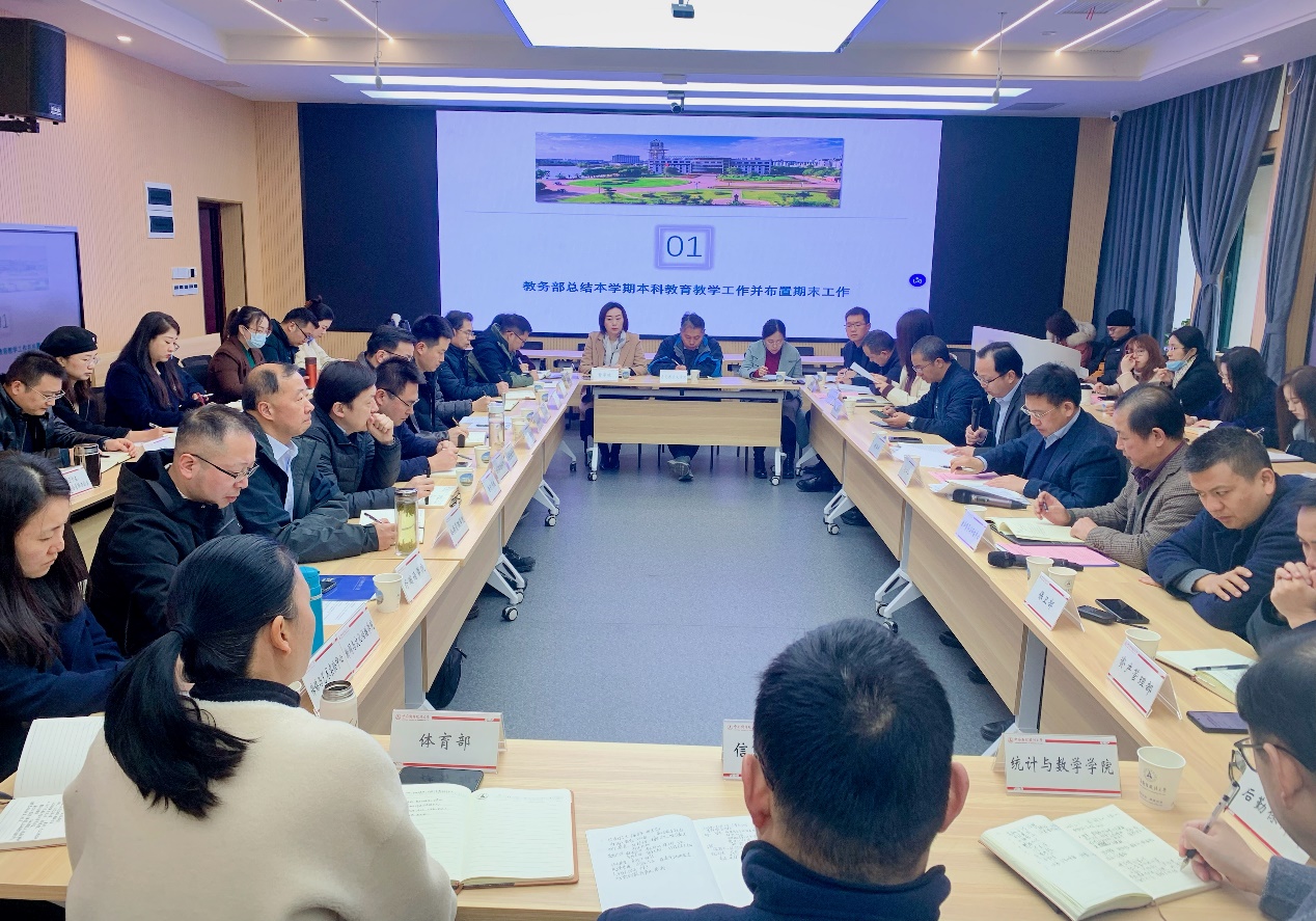 新闻网讯(通讯员 胡智 王颖)12月5日上午,学校在文泉楼203会议室召开本学期末本科教育教学工作例会,会议主题为“强特色,补短板,夯实新一轮审核评估工作基础”。会议由校党委常委、副校长刘仁山主持,相关职能部门负责人、各教学单位本科教学副院长(副主任)及教学秘书、教务部各科室负责人参加会议。