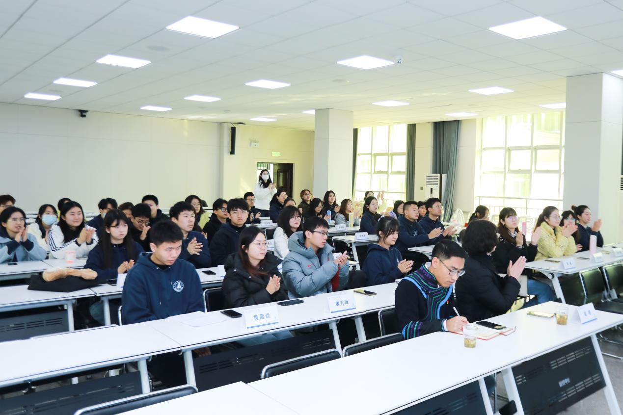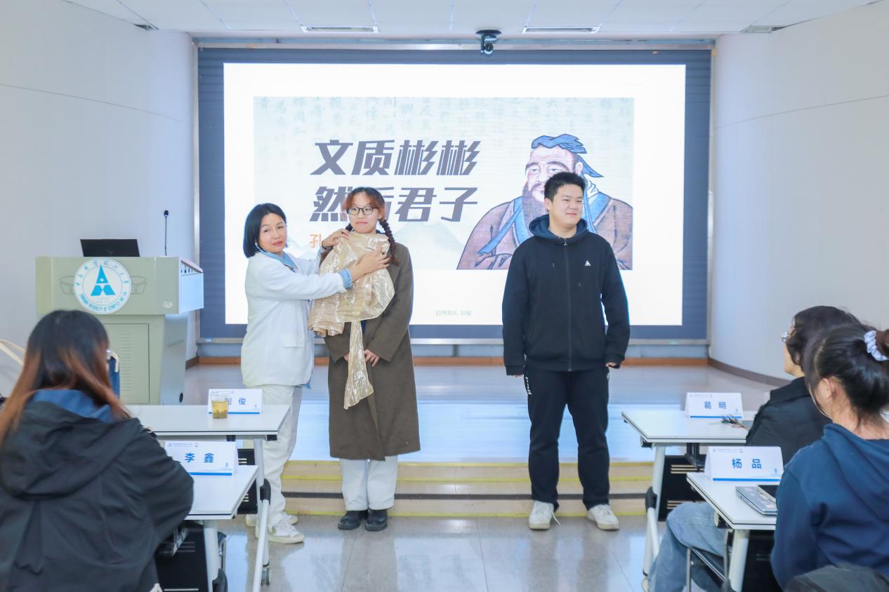 在讲座中,刘俊采用图片讲授、日常举例、亲身体验等多种方法,从穿衣之道、服饰风格、色彩搭配等方面阐述服饰之美。刘俊强调,不同颜色的服饰可以激发人不同的情绪感受,给人赋予特别能量。作为高校学生,在学习专业知识的同时,要善于从美学经典著作中汲取养分,提升个人修养和审美能力,展现青春风采。讲座现场刘俊和学员们交流互动,气氛活跃,呈现了一堂精彩纷呈的美育思政课。