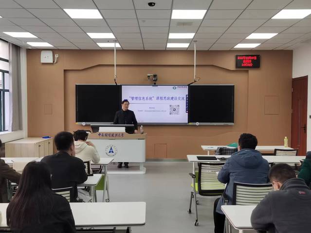 新闻网讯(学生通讯员 叶彦君)为切实做好课程思政建设工作,使各类课程与思想政治理论课同向同行,按照学校教师课程思政教学能力提升系列活动计划,12月7日下午,学校在文波205智慧教室举行理工类专业课程思政建设沙龙活动。教育部课程思政示范课程《管理信息系统》负责人,中南民族大学管理学院张劲松教授以《“管理信息系统”课程思政建设交流》为题作专题讲授,统计与数学学院和信息工程学院60余名教师代表参加此次沙龙活动。