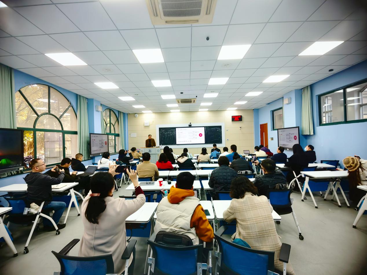 新闻网讯(通讯员 李晗 摄影 刘金旺)为提高第三批国家级一流本科课程建设与申报质量,12月7日上午,学校在文波楼111智慧教室组织召开了国家级一流课程申报专题培训会,特邀国家精品课程资源中心、全国高等学校教学研究中心原副主任居烽作培训报告。会议由教务部副部长柳正华主持,来自各个学院各级一流课程负责人及团队成员60余人参加培训。