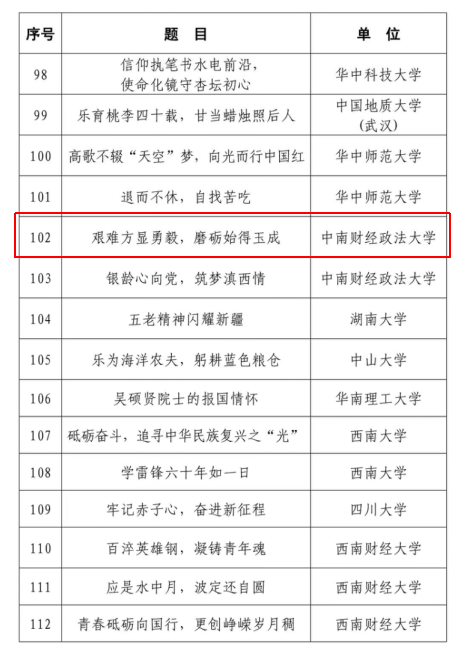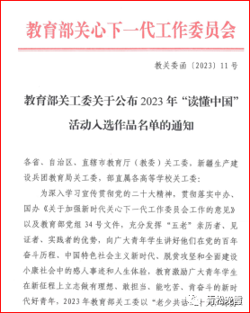 新闻网讯(学生通讯员 郭祺)近日,教育部关心下一代工作委员会印发《关于公布2023年“读懂中国”活动入选作品名单的通知》(教关委函[2023]11号),财政税务学院《陈光焱:艰难方显勇毅,磨砺始得玉成》(作者:郭祺、竹苗苗 指导老师:袁桂君、钟唯)获评全国优秀征文奖。