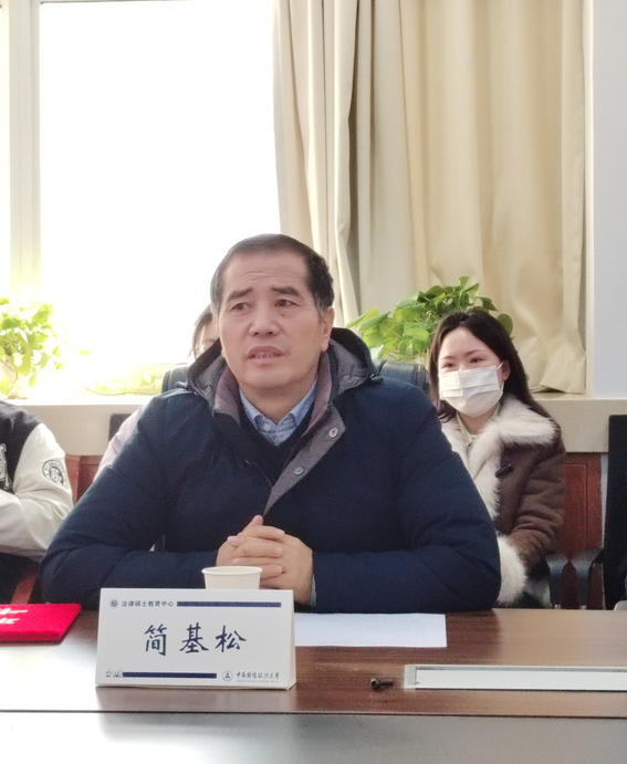 简基松代表法律硕士教育中心和全体师生对优秀校友、广东山湖海投资有限公司董事长、法律硕士合作导师谢华扬先生一行莅临表示热烈欢迎,诚挚感谢校友对法律硕士教育中心研究生培养工作的支持。他介绍了近年来法律硕士专业学位人才培养和实习就业等有关情况,并讲述了“合作导师回校领航计划”活动的初衷和目的,希望切实落实“双导师制”培养模式,加强融通培养,实现理论教学与实践教学深度融合,帮助同学们更好的规划实习和就业,旨在将法律硕士培养成领航时代、领航未来的法律人。