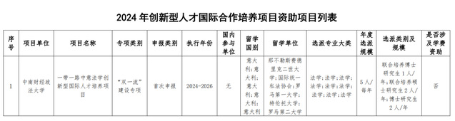 新闻网讯(通讯员 徐汇飞)近日,国家留学基金管理委员会发布《关于确定2024年创新型人才国际合作培养项目资助项目的通知》,我校“‘一带一路’中意法学创新型国际人才培养项目”成功获批,申报获批率高达100%。