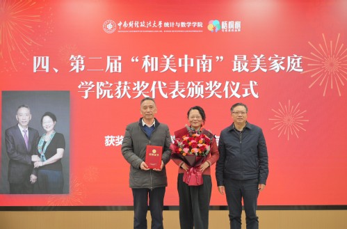 校党委常委、副校长覃红为肖腊珍、刘有章老师颁发第二届“和美中南”最美家庭荣誉证书