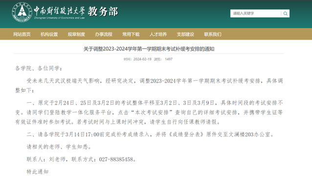 为确保新学期教学有序开展,教务部早准备、早谋划,寒假期间先后数次召开部务会,讨论制定新学期工作计划,并完成了628人次的缓考、1500人次的补考考场编排和考务安排等工作。考虑到恶劣天气影响,提前发布新学期本科教学工作的温馨提示,通过线上线下相结合的授课方式保障因天气原因暂缓返校的学生正常学习,为学生提供暖心、舒心、安心的学习环境。