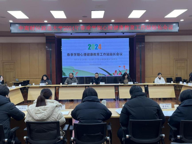 春季学期心理健康教育工作站站长会议是落实学校春季工作会议精神的有力举措。接下来,心理健康教育咨询中心和各学院心理工作站将紧紧围绕以德育心、以智慧心、以体强心、以美润心、以劳健心等方面协同发力、多措并举,切实将心理健康教育工作落到实处,促进中南大学子全面成长成才。