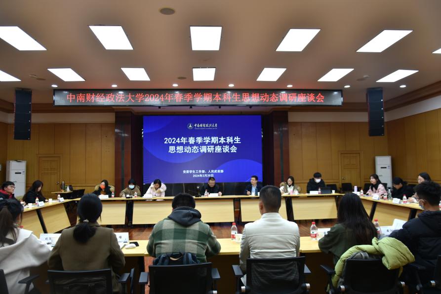新闻网讯(通讯员 周潇 摄影 刘传莉)2月29日下午,党委学生工作部于文潭四楼报告厅组织开展2024年春季学期本科生思想动态调研座谈会。党委学生工作部、人民武装部部长王前哨,各科室负责老师与各学院20名学生参与座谈,党委学生工作部副部长范献龙主持活动。