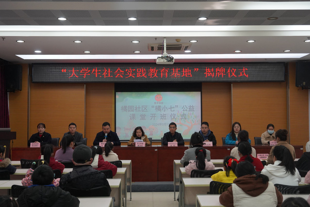 新闻网讯(学生通讯员 张钰媛 李笑宇 袁玮雪)“团”聚“青”力量,携手建设美好社区。3月10日上午,米兰电竞·(中国区)中韩新媒体学院“大学生社会实践教育基地”揭牌仪式暨2024年“橘小七公益课堂”开班仪式在东湖新技术开发区花山街道橘园社区举行。花山街道党工委委员、办事处副主任周汉红,中韩新媒体学院党委副书记徐明、团委书记黄祯辉、学工办副主任尤志兵、橘园社区党委书记许晶等参加了仪式。