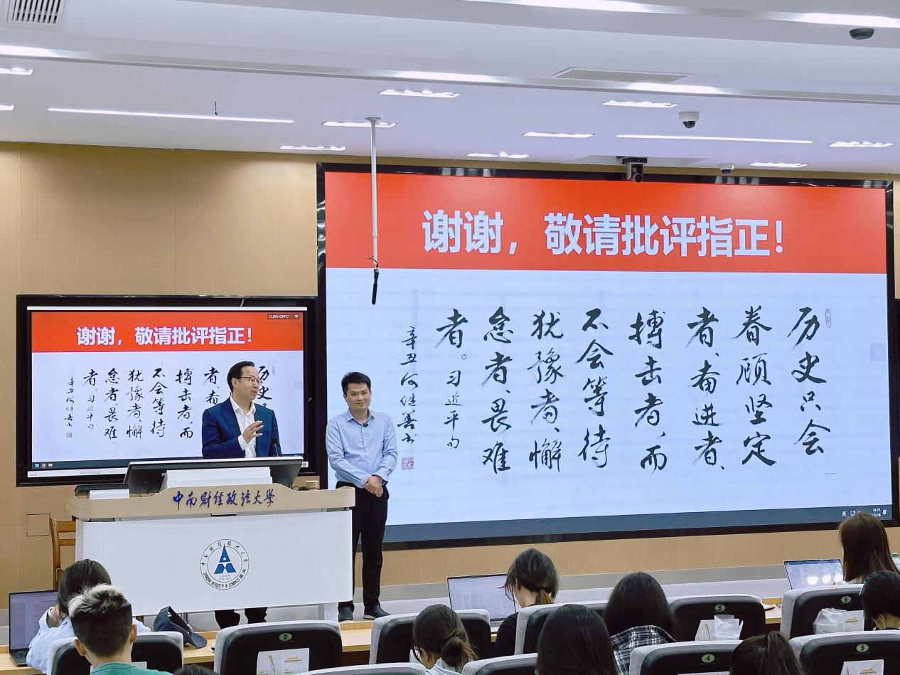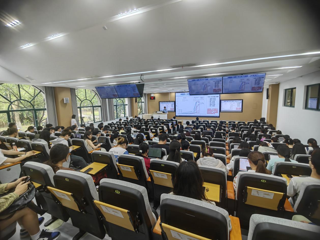教务部部长钱学锋作课堂总结。他表示,李帝铨教授的讲座既是一堂科普课,也是一堂思政大课,润物无声地传递出地球物理学课堂中蕴含的思想价值和精神内涵,践行了“三百”课程向中南大学子普及我国“三深”(深海、深空、深地)战略的育人初心。