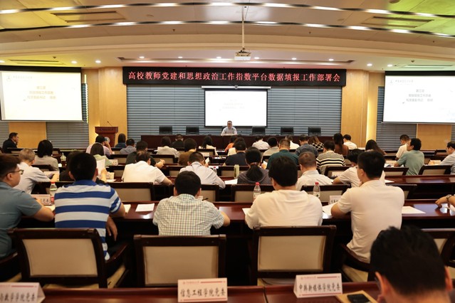 新闻网讯(通讯员 李必成 摄影 崔桢桢)5月31日上午,学校在中原楼七楼会议室召开高校教师党建和思想政治工作指数平台数据填报工作部署会。校党委副书记陈狮,党委教师工作委员会成员单位以及数据填报相关职能部门主要负责人、各教学单位党委书记及师德建设工作小组联络人共60人参加会议。会议由陈狮主持。