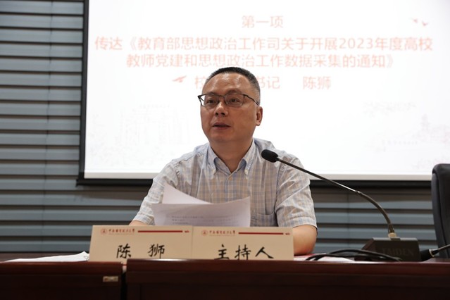 陈狮传达教育部思想政治工作司《关于开展2023年度高校教师党建和思想政治工作数据采集的通知》。