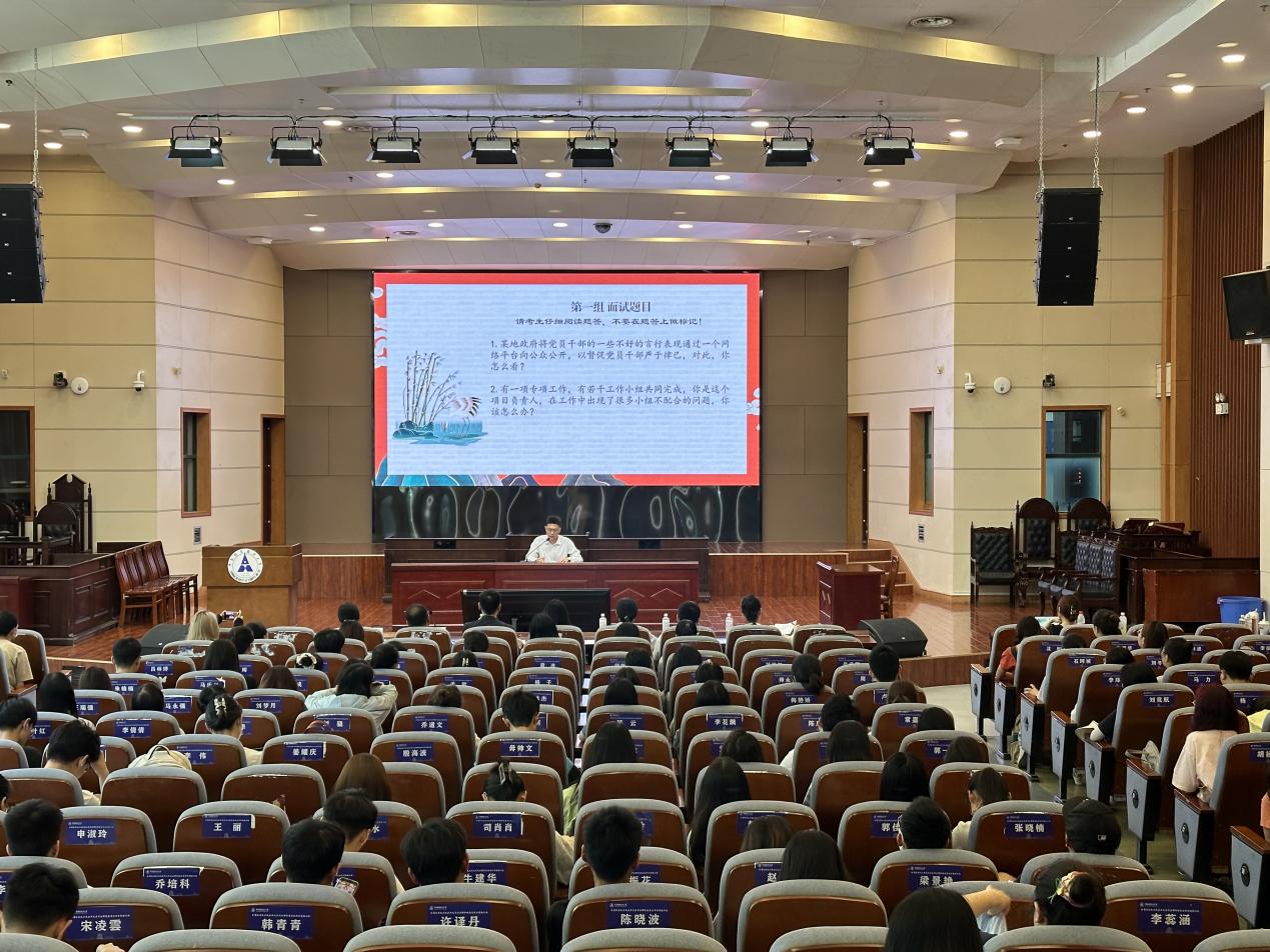 新闻网讯(学生通讯员 左喻文杰 摄影 朱家仪)为帮助我校研究生掌握求职面试技巧,丰富求职经验,促进研究生高质量就业,2024年6月3日下午,2023-2024学年研究生模拟面试大赛(选调生专场)在文泰楼模拟法庭顺利举办。学校党委研究生工作部副部长李芳、就业指导服务中心肖力玮老师、中兴通讯武汉中兴软件有限公司财务总监庄春芳校友、华图教育集团组织部副部长翟豪杰先生、党委研究生工作部付慧娟老师等受邀担任评委嘉宾。