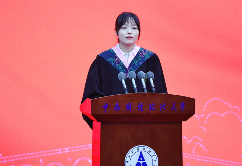 毕业生代表、法学院2021级硕士研究生肖勇表示,毕业后,他选择到基层工作,成为一名纪检监察工作者,传承红色基因、扎根祖国大地、接续奋斗作为、服务人民群众。