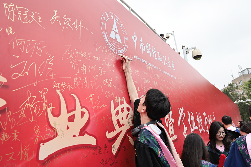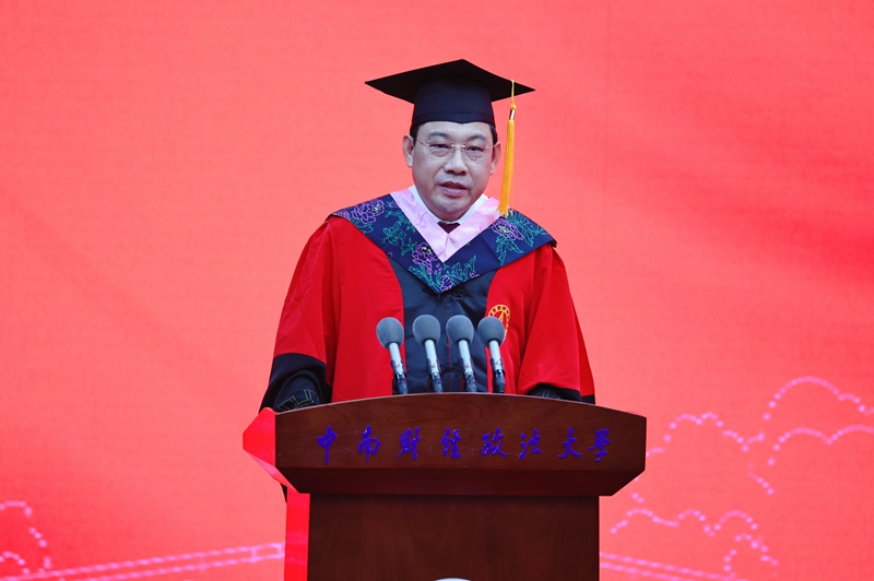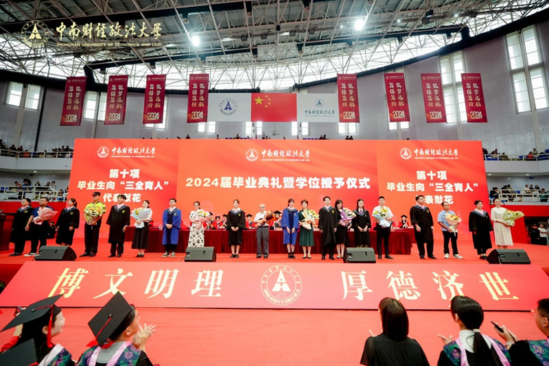 自2014年以来,校长、党委副书记杨灿明将“情”“理”“法”“真”“善”“美”“仁”“义”“礼”“智”10个字在毕业典礼上送给当年的毕业生。今年,他将“仁义礼智信”的最后一个字“信”送给毕业生。希望大家无论时代、环境、形势如何发展,都应当始终珍视、持之以恒坚守好“信”这个字,并不断丰富它的时代内涵与价值内涵。