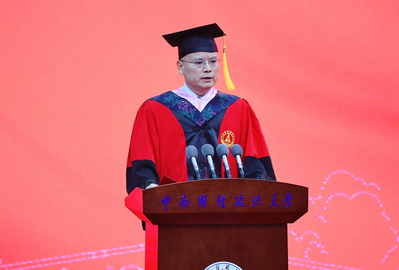 “我在五年的时间里,将这五个字分别送给了当年毕业的同学,就是希望同学们能从我们深厚的历史文化底蕴中汲取受益终身的强大精神力量,始终自信自强、挺膺担当、笃行实干。”杨灿明表示,作为中国传统文化核心价值的“仁义礼智信”在塑造中华文化和民族精神上起到了非常重要的作用。希望所有毕业生融会“情理法”,心怀“真善美”,笃行“仁义礼智信”,立大志,明大德,成大才,担大任,成长为有理想、有学问、有才干的实干家和栋梁材。