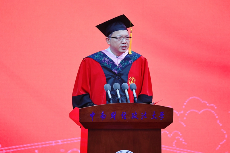 教师代表、财政税务学院院长张克中结合自己的经历,用“坚持的力量”勉励毕业生们坚持用自己独特的视角去审视世界,用自己的方式定义未来,改变世界;坚持内心深处人性光芒的呼唤,坚守底线和真善美。