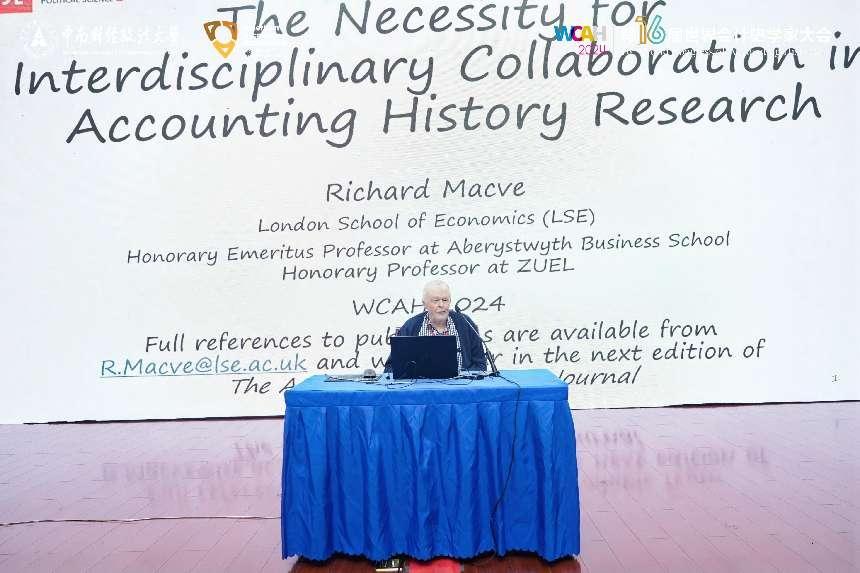 在特邀报告环节,国际著名会计学家郭道扬教授,伦敦政治经济学院名誉会计教授理查德·麦克菲,新加坡国立大学李真教授,意大利会计史学家学会主席马西姆·萨基亚科姆教授分别以《历史悠久而光辉灿烂的中国古代会计文化》《The Necessity for Interdisciplinary Collaboration in Accounting History Research》《三国时期吴国的复式记账》《Accounting and Disasters in the History of Human Civilization》为题作主旨报告。厦门大学原党委常务副书记李建发教授和西南财经大学原党委书记赵德武教授主持特邀报告。
