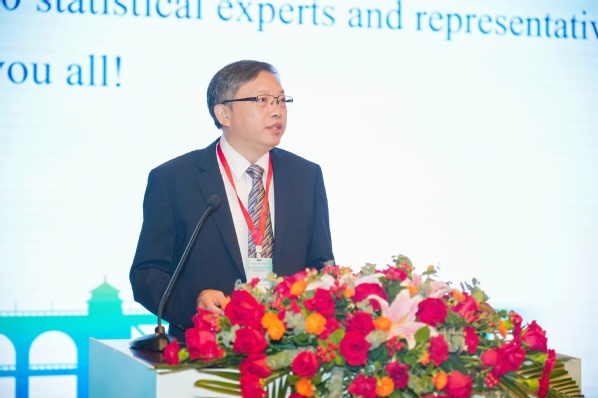 国家统计局统计科学研究所首席研究员、中国统计学会常务副秘书长许亦频(左)出席会议,湖北省统计局党组成员、副局长,湖北省统计学会常务副会长叶福生(右)致辞