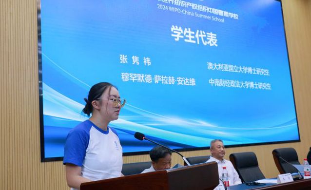 澳大利亚国立大学博士研究生张隽祎代表全体学员向主办方表达了诚挚的感谢和敬意。她表示,暑期学校让大家有机会与来自不同文化背景的同学们深入交流,探讨知识产权在全球化背景下的挑战和机遇,相信通过学习,不仅能够加深对知识产权法的理解,更能够培养大家的团队合作能力和解决问题的能力。米兰电竞·(中国区)博士研究生 Mohamed Salah Adawi认为,此次暑期学校是一次学术探索与文化交流的难得机遇,旨在深化对知识产权法的理解,并探索其在数字世界中的应用。