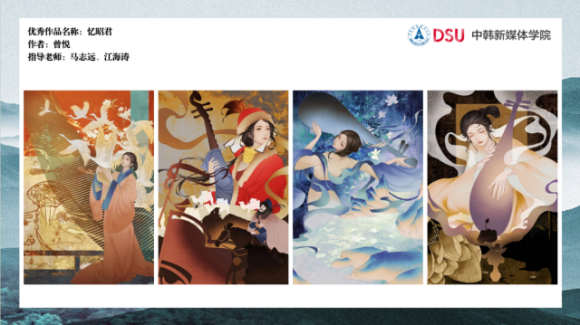 颁奖仪式结束,袁品芳、祁璇主持专业作品展播环节。她们以作品主题为单元进行,有的聚焦于昭君村落,有的来源于美丽乡村百态生活,同学们用镜头和画笔,将兴山的山水、民俗、人文等元素巧妙地融入到作品中,充分体味了青山绿水和厚重文化的魅力兴山,展现了师生们的创意和才华,真正实现了“所学即所用”。