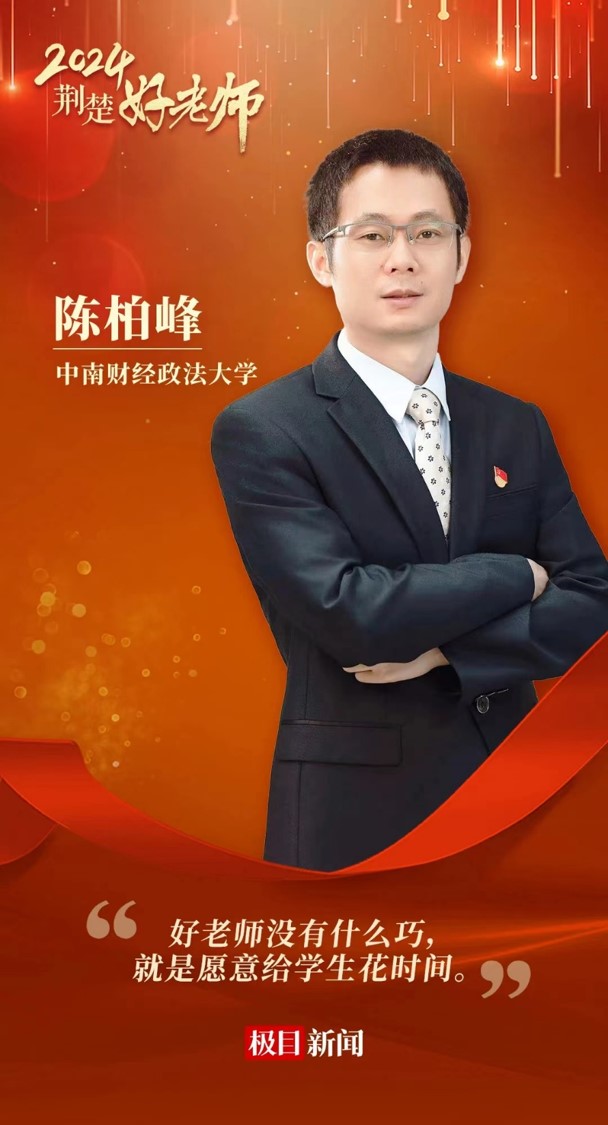 新闻网迅(通讯员 李必成)近日,2024年“荆楚最美教师”“荆楚好老师”宣传选树活动名单公布,我校法学院、国家治理学院院长陈柏峰教授入选“荆楚好老师”。9月6日晚,在第40个教师节即将到来之际,2024“荆楚好老师群星闪耀”教师节活动在武汉举行,校党委书记侯振发,党委教师工作部、人事部部长蒋涛,陈柏峰教授应邀参加活动。