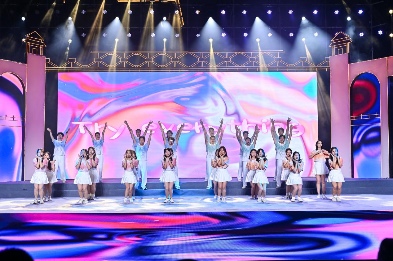 由爱幕时刻音乐剧社、校啦啦操队、体育舞蹈队带来的歌舞《欢聚时刻》引领同学们在汗水中寻觅自我。