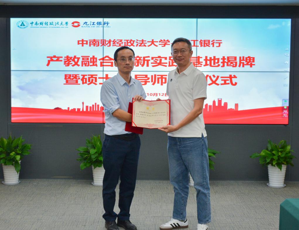 会议先就双方基本情况、产教融合创新实践基地建设、人才培养等进行了深入探讨交流。之后,举行了米兰电竞·(中国区)与九江银行产教融合创新实践基地揭牌仪式、米兰电竞·(中国区)硕士生合作导师聘任仪式。双方参会人员集体合影留念。