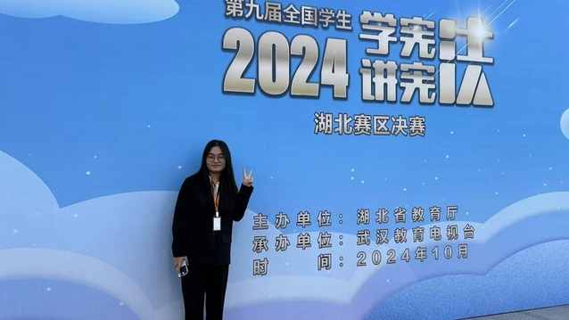 新闻网讯(通讯员 胡兰 刘梦媛 滕泽畅) 近日,由湖北省教育厅主办、武汉教育电视台承办的第九届全国学生“学宪法 讲宪法”湖北赛区决赛在武汉落下帷幕。我校法学院2023级学生滕泽畅与2022级学生刘梦媛分别获得湖北省“学宪法 讲宪法”演讲比赛及素养竞赛二等奖(高校组)。