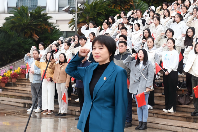 礼毕,袁桂君同志带领全体师生重温入党誓词,用坚定有力的宣誓声表达了对党的赤子之心。入党誓词是初心使命的再宣示,也是接续奋斗的再出发。