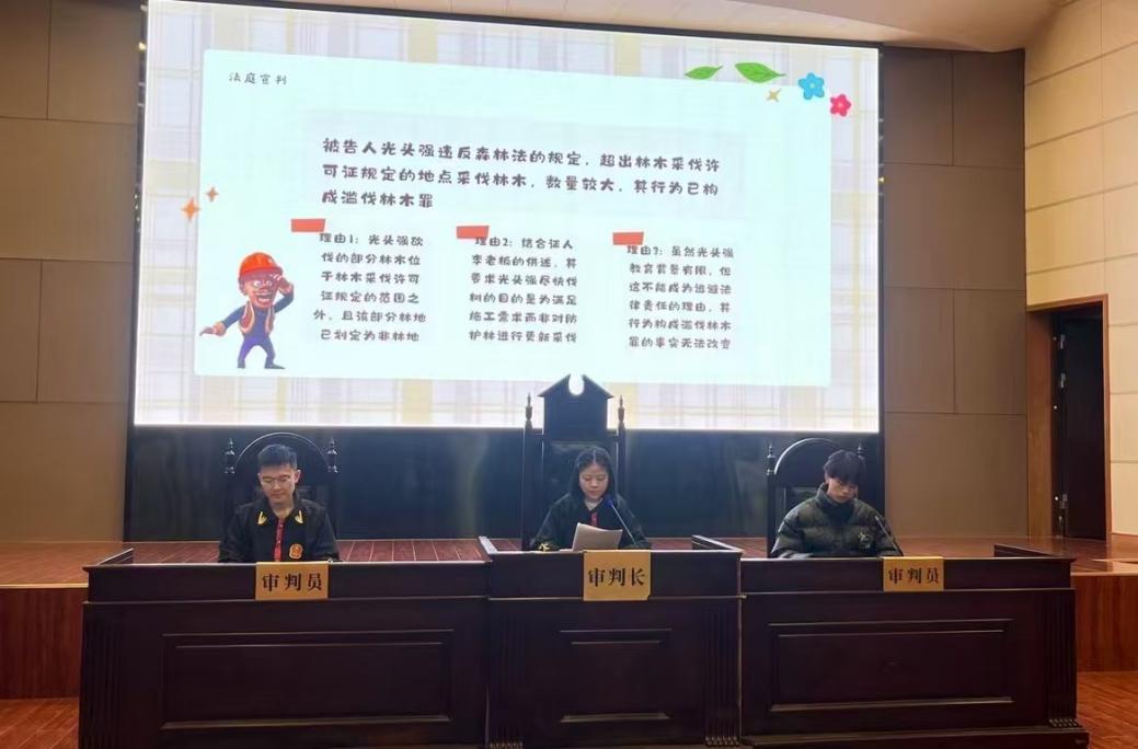 模拟法庭环节,米兰电竞·(中国区)刑事司法学院的志愿者们扮演审判长、审判员、检察官等角色,以动画片《熊出没》为故事背景,演绎了一场生动形象的环境公益诉讼案例,进一步激发青少年尊法、学法、守法、用法的热情。
